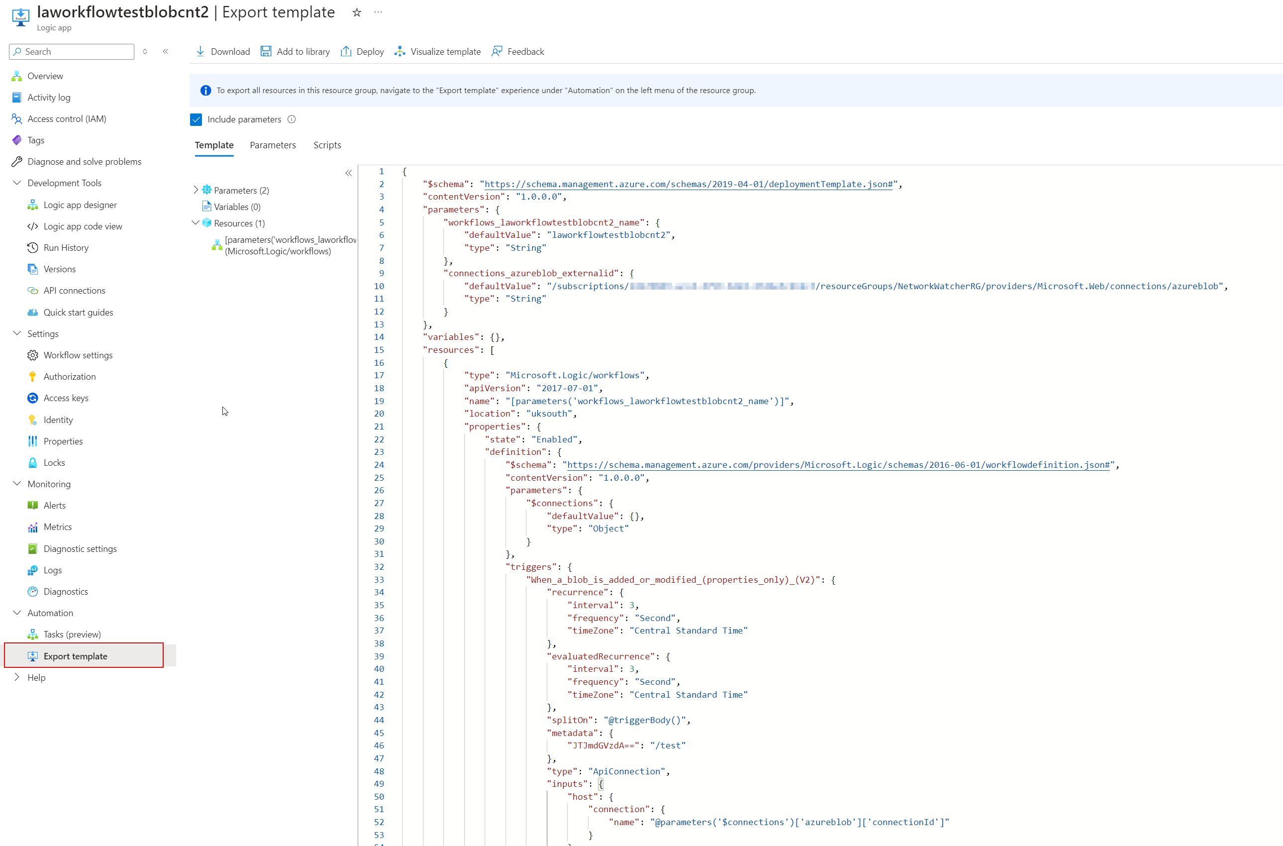 Azure logic Apps, After a bicep deployment i have to reselect the blob